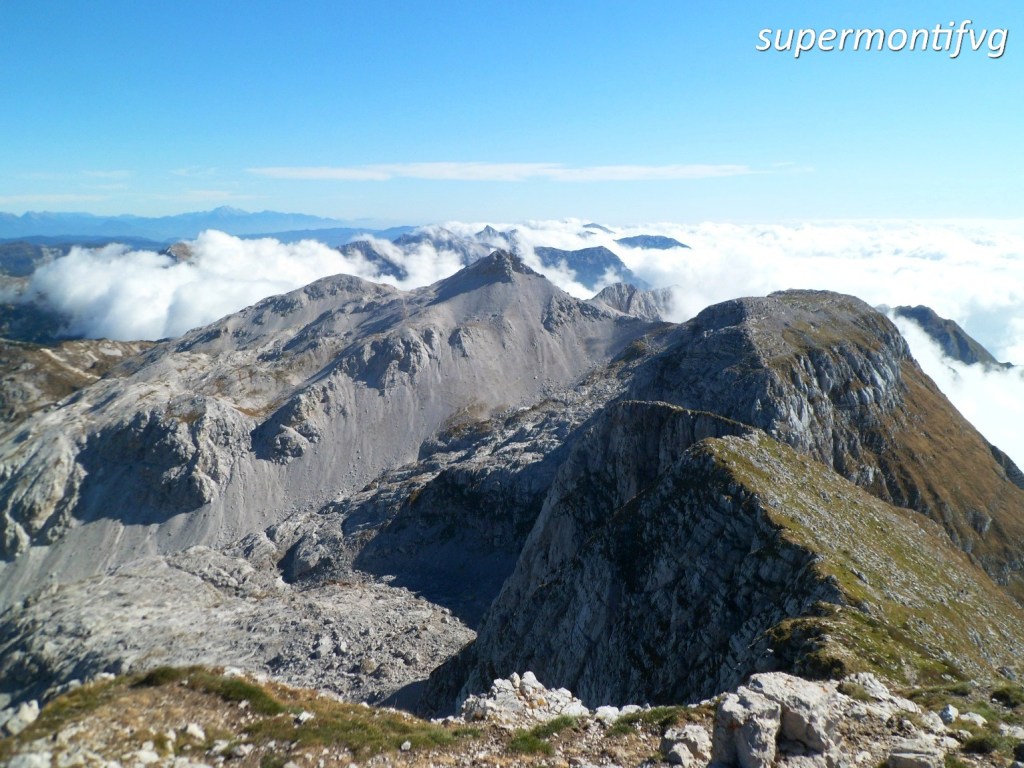 Krn (Monte Nero) si trova nelle Alpi Giulie slovene ed è la montagna più alta (2244m) nella catena montuosa di Krn e una delle montagne sopra i duemila metri più facilmente accessibili nella Valle dell’Isonzo. Punto di partenza dell’escursione è il parcheggio nei pressi di Planina Kuhinja, raggiungibile dal paese di Krn. Dal parcheggio si seguono le tabelle rosse, lungo la pista forestale che porta verso Zavetišče na Planina Kuhinja, che si lascia deviando verso destra e risalendo i pendii erbosi dell’alpeggio. Si continua a salire sui pendii destinato all’alpeggio, fino a giungere a Planina Slapnik (50 minuti dalla partenza). Si continua a salire con pendenza regolare i pendii più ripidi che caratterizzano il versante sud del Krn, detto “lavador”. La pendenza è sempre regolare e e in tre ore circa dalla partenza si giunge al rifugio Gomilšček, posto a pochi minuti dalla cima del Knr. La zona del Krn (Monte Nero) e sulla vicina Batognica (Monte Rosso) si svolsero aspri combattimenti durante la Grande guerra e tutta la catena è ricca di testimonianze. Dalla cima del Krn il panorama è molto vasto, particolarmente su tutte le Alpi Giulie slovene poste a nord della cima. Il rientro avviene sul percorso effettuato all’andata. L’escursione richiede buon allenamento per il dislivello di 1250m da superare, ma non presenta difficoltà dal punto di vista del tracciato. Inoltre si svolge su pendio a sud, sempre battuto dal sole, ed è particolarmente indicata nei mesi autunnali oppure nelle prime ore dei mesi estivi.