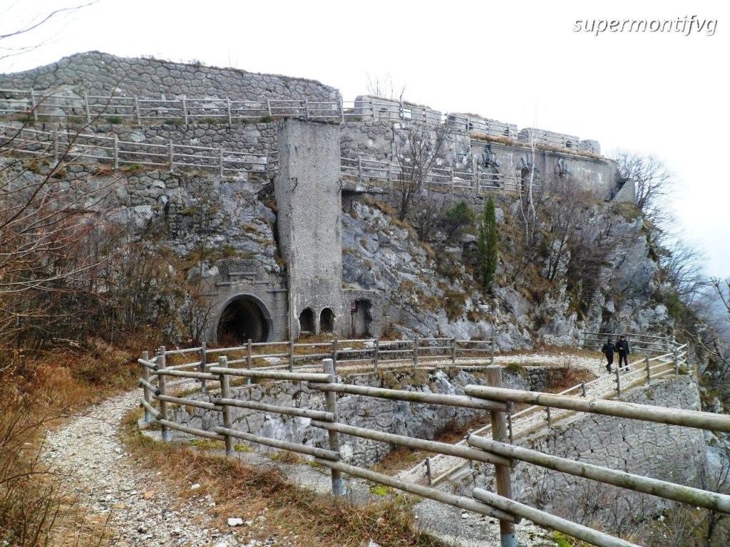 Il monte Festa si trova nelle Prealpi Carniche ed è posto tra il lago di Cavazzo ad ovest e il fiume Tagliamento a est. Sulla cima è stato costruita agli inizi del Novecento una delle più suggestive opere militari legate alla Grande Guerra presenti in Friuli Venezia Giulia. Lungo il percorso di salita al monte sono presenti numerosi pannelli descrittivi che spiegano tutta la storia del forte ed in particolare il suo ruolo duranta la ritirata del Regio esercito successiva alla battaglia di Caporetto. Punto di partenza dell’escursione è il parcheggio nei pressi della sella di Interneppo, raggiungibile da Interneppo o da Bordano. Si segue la strada militare, inizialmente asfaltata, di servizio al forte, che traversa le pendici occidentali dei monti San Simeone e Festa. Dopo aver percorso poco più di due chilometri, si intercetta il sentiero CAI 838 che sale da Interneppo. A questo punto si può decidere di proseguire sulla strada oppure salire sulla destra seguendo il sentiero CAI, che sale più ripido, intersecando regolarmente la strada militare. A quota 630m si raggiunge un belvedere sul lago di Cavazzo. Per salire alterniamo tratti di sentiero e tratti di strada e in poco meno di due ore arriviamo al pianoro a 980 m dove sono presenti i resti di alcune casermette e di magazzini. Si continua a salire e in pochi munuti si raggiunge il forte e la cima del monte Festa (circa 2ore e 20 minuti dal parcheggio). Nella parte bassa del forte si possono visitare due caverne utilizzate come deposito per le munizioni mentre nella parte alta sono presenti le due batterie carozzate, per un totale di 8 postazioni per cannoni. tra le due batterie sono visibili i resti della teleferica che collegava il forte ad Amaro. Il rientro avviene o per la strada militare oppure tramite il sentiero CAI 838 che taglia lungo il bosco (circa 2 ore dalla cima).