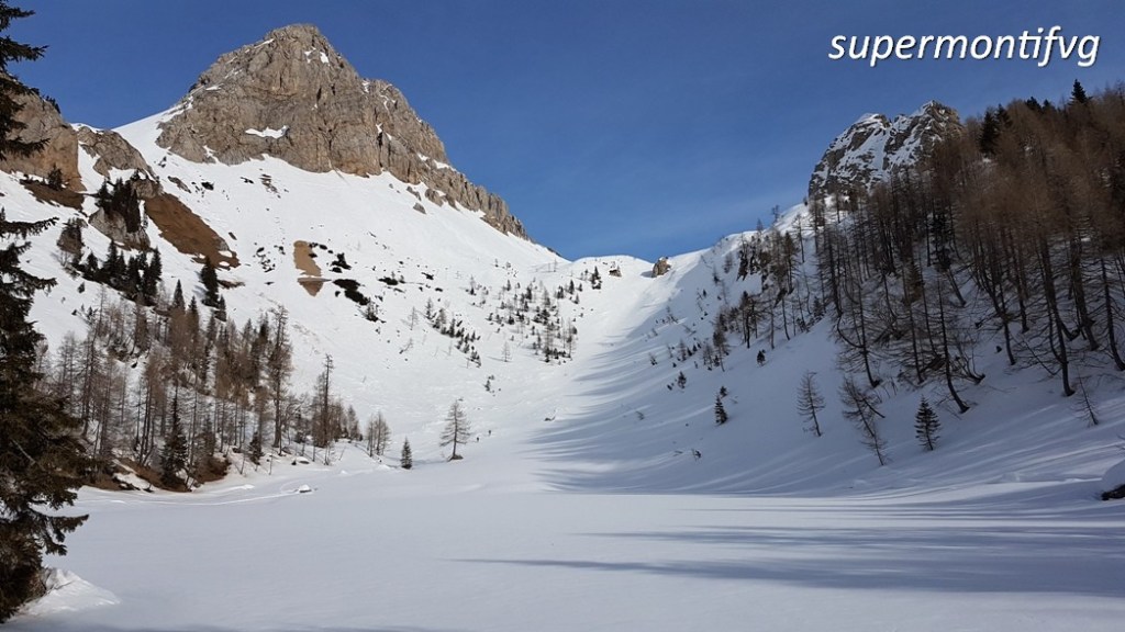 Il lago Bordaglia è una classica meta delle escursioni tra le montagne friulane (vedi l’escursione in autunno). Anche in inverno può essere raggiunto, ma solo in condizioni di manto nevoso stabile. Punto di partenza della ciaspolata è la località di Pierabech, che si raggiunge da Forni Avoltri. Dal parcheggio si scende con il sentiero CAI 141 sul greto del rio Fleons e lo si attraversa tramite un ponte in legno. Sulla sponda sinistra del rio si intercetta una pista forestale che si segue a destra per qualche decina di metri, e si inizia a salire sulla sinistra su una vecchia mulattiera (CAI 141), che risale la sponda destra del rio Bordaglia. Superato un punto di osservazione sulla forra del rio, il sentiero si collega alla pista forestale che sale alla casera Bordaglia di sotto. A quota 1420m circa si incontra un bivio; il sentiero CAI 141 prosegue a destra verso casera Ombladet di sotto; noi saliamo a sinistra lungo la pista CAI 142 (il sentiero che permette di tagliare la pista è inagibile per schianti) e raggiungiamo il pianoro che ospita la casera, le stalle e la chiesetta dedicata a San Giovanni Bosco. Si prosegue per il sentiero CAI 142 fino alla casera Bordaglia di sopra e al lago Bordaglia. Per completare l’anello, dalla casera si risale il pendio a nord della casera (seguendo in parte il sentiero CAI 142) fino al lago Pera e quindi al passo Sissanis; dal passo è preferibile risalire qualche metro verso il monte Navagiust e scendere lungo la dorsale che corre parallela al canale che scende dal passo Sissanis verso la valle omonima. Giunti ai primi larici del bosco che si estende nella parte bassa della val Sissanis, si segue il tracciato del sentiero CAI 142-403, che corre parallelo al rio Sissanis. Si perviene ai ruderi della casera Sissanis di sopra e successivamente al pianoro che ospita la casera Sissanis di sotto. Dalla casera si scende per la pista CAI 142 verso la val Fleons, dove si incontra un bivio; a destra la strada risale la val Fleons verso casera Fleons di sotto mentre noi proseguiamo in discesa a sinistra (CAI 140) e oltrepassata la cava di marmo raggiungiamo il punto di partenza della escursione.