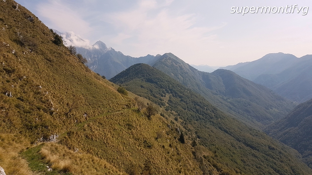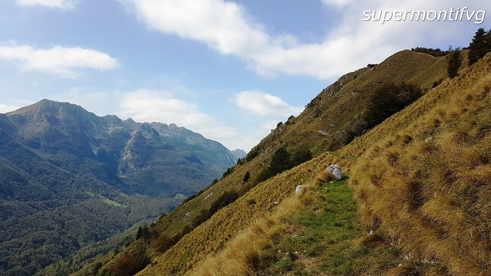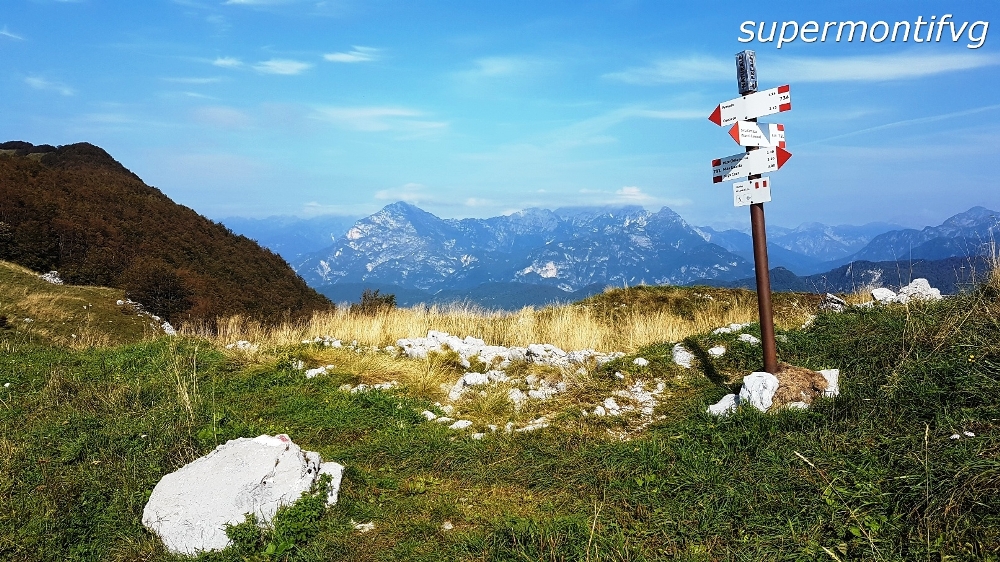 20/09/2020 – Il monte Chila e il monte Stregone si trovano sulla dorsale che chiude a sud la val Resia, nella parte terminale sopra Coritis. Il punto di partenza dell’escursione si trova nei pressi di sella Carnizza, sulla strada che collega gli stavoli Gnivizza a Uccea. Sella Carnizza si può raggiungere sia dalla val Resia (per Lischiazze) o dalla val Torre. Il sentiero che utilizzeremo ha inizio dopo aver passato gli stavoli Gnivizza, sulla sinistra, proveniendo dalla val Resia. Il sentiero CAI 731 risale il versante sud del monte Nische, per giungere ai ruderi di casera Nische (30 minuti circa dalla partenza), punto in cui il panorama si apre verso la val Resia e il monte Canin. Nei pressi dei ruderi della casera si intercetta il sentiero CAI 734 che sale da Ovedasso. Proseguiamo a destra sul sentiero CAI 731 che percorre la dorsale tra la valle di Uccea e la val Resia fino al monte Guarda. Il sentiero con qualche saliscendi attraversa il versante sud del monte Nische per proseguire verso il monte Stregone. Per salire sulla cima del monte Stregone, quando il sentiero raggiunge il punto più alto al limite della faggeta, a quota 1420m, poco prima della cima, si trova un ometto a sinistra; si risale il pendio prima nel bosco e poi su prato mirando ad una piccola antenna. La cima del monte Stregone si trova poco più ad ovest del punto in cui è installata l’antenna. Tornati sul sentiero CAI, si prosegue verso il monte Chila (fare attenzione ad un breve tratto franato nel tratto in discesa), perdendo quota fino alla sella tra monte Stregone e monte Chila, dove si incontrano le indicazioni del sentiero CAI 732 che scende verso la val Resia. Si prosegue sul sentiero CAI 731 fino ai ruderi di casera Chila. Per salire alla cima del monte Chila, si entra nel bosco verso nord, prima dei ruderi. Si incontra sulla sinistra, sopra un grande masso, un ometto e giriamo a sinistra, seguendo una traccia poco battuta. Da qui, in 5 minuti, seguendo alcune tracce puntiamo prima ai resti di una trincea (muretto in sassi) e poi raggiungiamo la cima panoramica del monte Chila. Per il rientro scendiamo ai ruderi di casera Chila e ripercorriamo il sentiero CAI 731 fino alla macchina.