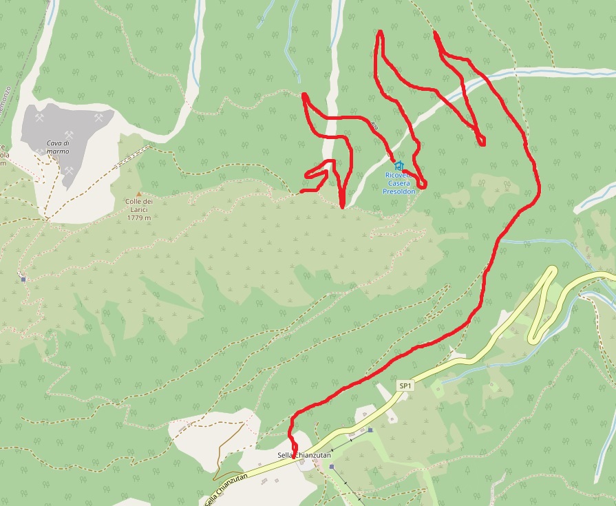 20/02/2021 – Casera Presoldon (o Presaldon, come indicato sulla targa della casera) si raggiunge da sella Chianzutan lungo le piste forestali che permettono l’accesso alla cava di marmo presente sulle pendici del monte Lovinzola. Oltre alla casera, che rappresenta un primo punto di arrivo, la ciaspolata può proseguire fino a raggiungere la grande sedia posta nei pressi del belvedere, posto a 1520m lungo la cresta orientale del Colle dei Larici. Punto di partenza della ciaspolata è sella Chianzutan, parcheggiando l’auto presso il piazzale. Sul lato opposto del piazzale, si seguono le indicazioni del sentiero CAI 806 fino ad incontrare, appena entrati nella faggeta, una pista forestale che traversa il versante sud del Colle dei Larici. Si segue la pista a destra, in leggera discesa. Al successivo bivio si continua in leggera discesa a destra. Al bivio successivo si continua a sinistra (a destra troviamo la pista forestale che si stacca dalla strada asfaltata, che raggiunge Sella Chianzutan, nei pressi dello stavolo Doncas) e si inizia a salire con pendenza regolare e lieve la faggeta che ricopre il versante orientale del Colle dei Larici. Fare attenzione lungo la salita ad alcune piste che si staccano dalla pista che sale a casera Presoldon. Dopo circa 2 ore dalla partenza si raggiunge il pianoro che ospita casera Presoldon, con il panorama che si apre verso la piana di Tolmezzo e il monte Amariana, fino al monte Canin. Dalla casera si prosegue sulla pista forestale salendo verso il Colle dei Larici; i panorami iniziano ad aprirsi e si raggiunge così il belvedere di quota 1520m su cui è stata posizionata una grande sedia in legno. Il rientro avviene lungo la stesso itinerario percorso all’andata, con la possibilità di tagliare qualche tornante. Si può accorciare la ciaspolata partendo dalla strada asfaltata nei pressi dello stavolo Doncas, con il parcheggio che si trova o all’imbocco della pista forestale o nel parcheggio posto poco più avanti sulla sinistra salendo a sella Chianzutan.
