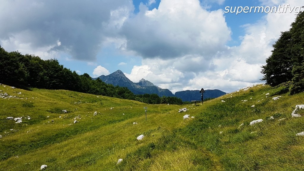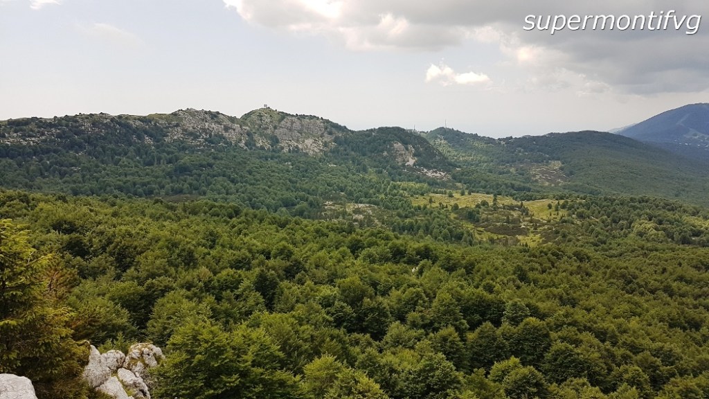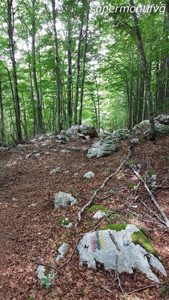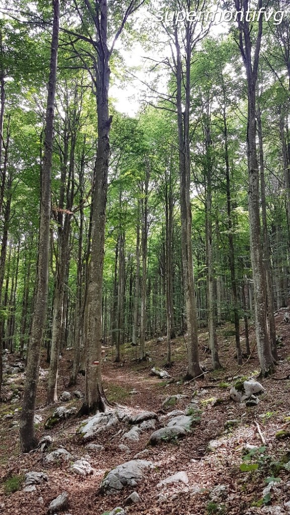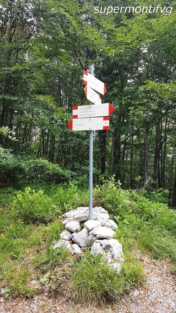 11/07/2021 – Monte Ciastelat e Pala Fontana sono due cime che si trovano nelle Prealpi Carniche e sono raggiungibili con dislivello moderato da Piancavallo. Punto di partenza della escursione è nei pressi di Pian delle More, lungo la strada che collega Piancavallo a Barcis. Nei pressi della partenza del sentiero CAI 971 si può lasciare l’auto sul lato della strada. Dalla strada si inizia a camminare lungo una pista forestale; dopo poche centinaia di metri si lascia la pista e si seguono a destra i segnali CAI del sentiero che si addentra nella faggeta. Poco oltre, si raggiunge un’altra pista forestale, la si segue per poche decine di metri e si continua a salire a sinistra lungo il sentiero CAI 971 nella faggeta. Dopo altri 10 minuti si intercetta una pista forestale e si prosegue nel bosco per ritrovare la strada poco più sopra. Dopo poche centinaia di metri si giunge ad un ampio trivio. La pista forestale CAI 971 prosegue a sinistra verso casera Montelonga mentre noi proseguiamo dritti seguendo le indicazioni della tabella CAI 915, che passando attraverso i pendii della casera dietro Ciastelat (ruderi), porta ad un trivio posto alla base della torretta del monte Ciastelat. Dal trivio in pochi minuti si sale al Ciastelat (breve tratto EE, circa 1 ora e mezza dalla partenza). Dalla cima si torna al trivio e si seguono le indicazioni del CAI 915 che ci porta alla croce della Pala Fontana (circa 2 ore e mezza dalla partenza); a circa 2/3 del percorso fino a Pala Fontana si incontrano le indicazioni del sentiero locale per raggiungere casera Giais. Dalla croce si scende verso forcella Giais e sul sentiero CAI 988 giungiamo ad un bivio; proseguendo a destra si rientra verso il sentiero CAI 917 e quindi al Pian delle More mentre proseguendo a sinistra sul CAI 985 proseguiamo verso casera Caseratte, monticata (circa 1 ora e 20 minuti dalla Pala Fontana). Dalla casera si risale il pendio alle spalle in direzione di Piancavallo. al successivo bivio lasciamo a sinistra le indicazioni della Passeggiata delle malghe e proseguiamo a sinistra lungo la pista forestale. Dopo circa 250 metri si incontra sulla sinistra una traccia (in nero tratteggiato sulla Tabaccco ma non indicata sulle mappe gratuite nelle app) che scende nella faggeta, segnalata da un segnale rosso sbiadito. La traccia è ricoperta da foglie ma si intuisce il tracciato; altri segnali rossi e alcuni segnavia a tre colori sulle rocce ci indicano la direzione per scendere. Il sentiero interseca per tre volte la pista da fondo. Al terzo attraversamento della pista da fondo si incontrano delle tabelle giallo-blu della PiancavalloRun che indicano di seguire a destra la pista; per il momento si tralasciano queste indicazioni. Nel successivo tratto nella faggeta ho perso i segnali del sentiero (probabilmente sono rimaasto a destra del sentiero) intersecando per la quarta volta la pista a fondo; con un po’ di senso di orientamento e seguendo (questa volta sì) le frecce giallo/blu della PiancavalloRun ho trovato la pista forestale che riporta al Pian delle More. Per trovare la pista giusta può essere utile aiutarsi con la linea elettrica aerea, che per un tratto corre parallela alla pista forestale che ho seguito. Quando la linea elettrica devia verso la strada asfaltata, la pista che porta a Pian delle More rimane nel bosco, proseguendo in traverso.