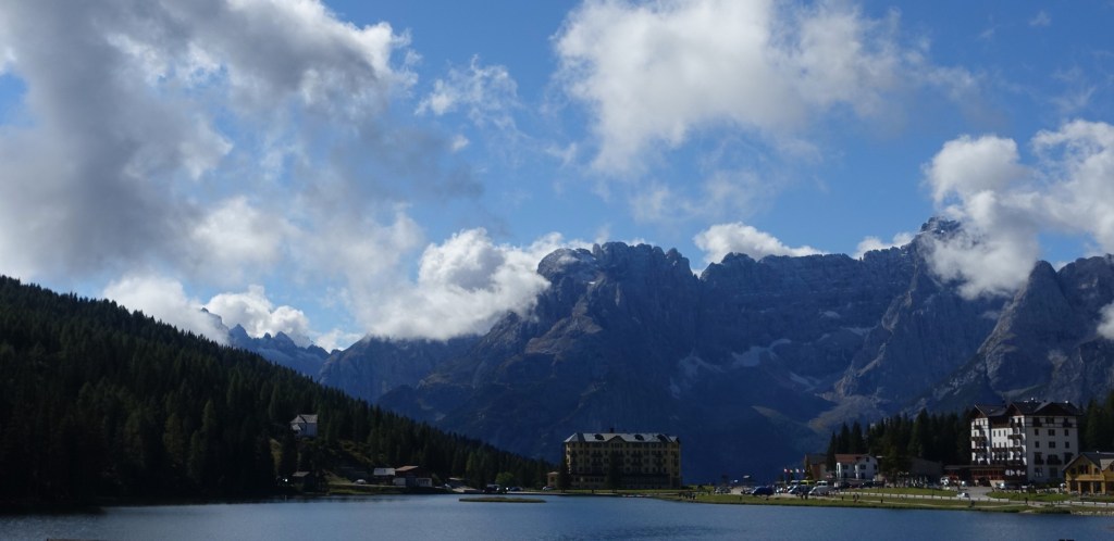 Provenendo in auto da Dobbiaco, l’avvio del percorso (CAI 224a) si trova sulla destra subito dopo il bivio per il Rifugio Auronzo/Tre Cime e poco prima di arrivare al Grand’ Hotel Misurina e sulle sponde del lago. Inizialmente il sentiero prende a salire dolcemente con ampi tornanti nel rado bosco di larici. Mano a mano che ci si avvicina alle balze rocciose che fasciano il versante est della catena, la pendenza aumenta sensibilmente e si procede a strette svolte tra i mughi. La fascia rocciosa viene superata risalendo un ripido canale (EE); il primo, breve tratto è su terreno detritico, più su il terreno è più agevole e consolidato, e consente di procedere con maggiore facilità grazie ad un tracciato a serpentina. Un traverso sotto una alta parete rocciosa precede la risalita a tornanti su ripidi verdi, tramite la quale ci si porta sulla larga dorsale, colonizzata dai mughi, attraverso la quale, costeggiando in qualche punto la precipite parete est, si perviene in breve e tranquillamente alla cima, indicata da un paletto con il nome e la quota del Monte Popena Basso (m. 2222 – la cartografia Tabacco riporta invece 2224). Come già detto, nonostante l’altitudine non particolarmente elevata, il panorama è veramente eccezionale in tutte le direzioni. Noi siamo rientrati per la stessa via di salita, ma c’è la possibilità di compiere anche un anello (difficoltà EE), scendendo ripidamente alla sottostante forcella e poi rientrando per il sentiero 224a che passa per Malga Misurina. L’escursione è molto breve (1 ora per la salita, 0.50 per la discesa), ma non banale.