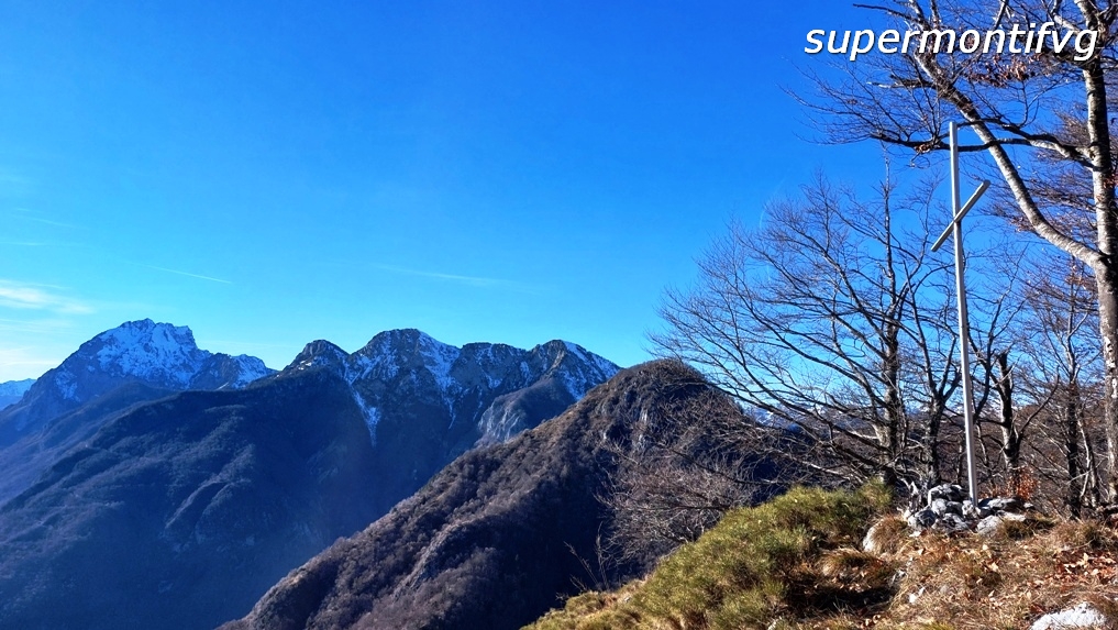 06/01/2023 – Il monte Monfredda si trova a nord di Ampezzo e dalla cima si apre un bel panorama su Ampezzo e sulla val Tagliamento. Punto di partenza dell’escursione (ad anello percorso in senso antiorario) è il paese di Feltrone, che si raggiunge in auto da Mediis. Alcuni parcheggi si trovano nella piazzetta al centro del paese. Dalla piazzetta ci si incammina in salita verso nord su strada asfaltata e dopo 100 metri si devia a sinistra, sempre su strada asfaltata; poco più avanti si raggiunge un bivio con le tabelle segnavia del sentiero CAI 235 che prosegue a destra e risale il versante est del monte Nolia. Si sale lungo una bella mulattiera sul CAI 235 fino alla selletta posta poco sotto il Col Maciul (qui si lascia il CAI 235 che prosegue a sinistra verso la Forca di Pani), da cui si possono raggiungere anche gli stavoli della Congregazione che si osservano sulla sinistra. Dalla selletta si sale liberamente fino alla cima del Col Maciul (1 ora e 10 minuti da Feltrone). Dal Col Maciul si scende liberamente verso nord fino a raggiungere la strada asfaltata che dalla forca di Pani scende verso Socchieve o Raveo. Si segue la strada asfaltata in discesa, passando accanto agli stavoli Cervias e per prati si raggiunge la cima erbosa del monte Floris. Poco più avanti si può anche visitare il faggio secolare isolato con panorama verso est. Continuando a scendere sulla strada asfaltata ci si dirige verso nord-ovest, in direzione degli stavoli Pani di Raveo. La strada inizialmente scende e poi risale; si passa accanto al luogo dove sorgeva il mulino di Pani; poco dopo incontriamo sulla sinistra una pista forestale e intercettiamo il sentiero CAI 221; per il momento si prosegue diritti e in pochi minuti si raggiungono gli stavoli Pani di Raveo con la piccola chiesetta (circa 1 ora dal Col Maciul). Si ripercorrono i propri passi fino alla pista forestale e la si segue a destra in salita. In pochi minuti si raggiungono i bellissimi stavoli Grant, con bellissimo panorama verso est. Si prosegue in salita sul sentiero CAI 221 e si raggiunge la Forca di Pani. Pochi metri dopo aver passato la forca di Pani in direzione di Voltois, si trova sulla sinistra la traccia che sale la dorsale nord-ovest del monte Monfredda. Dapprima la traccia sale nel bosco e dopo pochi minuti si immette su una pista forestale, che seguiamo fino alle indicazioni sui faggi (frecce rosse a destra e più in alto bolli) che indicano il sentiero che sale alla cima con croce del monte Monfredda (circa 1 ora e 10 minuti dalla chiesetta agli stavoli Pani di Raveo). Dalla cima si prosegue sulla dorsale nord-est in discesa seguendo il sentiero che in pochi minuti ci porta ad un punto panoramico con madonnina. Si prosegue in discesa seguendo i segnavia bianco-celesti fino ad immettersi sulla pista forestale che proviene dagli stavoli della Congregazione e che prosegue verso gli stavoli Nolia. La pista scende con 4 tornanti e raggiunge un pianoro erboso; la pista scende a destra e la si lascia attraversando il pianoro, lasciando a sinistra una zona recintata con uno stavolo abbandonato in muratura; oltre lo stavolo alcuni bolli azzurri ci portano alla cima boscosa del monte Nolia. Si rientra al pianoro erboso e suo limite sud un paletto in legno verniciato di azzurro con il numero 5 (?) indica la partenza del sentiero segnalato con bolli bianco-azzurri che scende verso Feltrone, attraversando un bosco di vecchi faggi e collegandosi sopra Feltrone al sentiero CAI 235 percorso all’andata. Si rientra infine in pochi minuti alla piazzetta di Feltrone.
