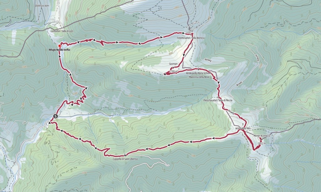 23/07/2023 – Meta dell’escursione di oggi è il monte Gozman, nei pressi del quale si trovano testimonianze delle opere del Vallo Alpino costruite prima della seconda guerra mondiale. Si compie un itinerario ad anello (orario) con partenza dal vallone di Ugovizza. Con una piccola deviazione dal percorso ad anello si può raggiungere anche la cima del monte Acomizza. Punto di partenza dell’escursione è il parcheggio al termine del vallone di Ugovizza, con pagamento di 5 euro per l’ingresso al vallone. Dal parcheggio si seguono le indicazioni per il sentiero CAI 507 verso il rifugio Nordio-Deffar e sella Bistrizza. Si sale lungo la pista di servizio del rifugio e in circa 35 minuti si raggiunge il rifugio. Nei pressi del rifugio si abbandona la pista per seguire a destra il di sentiero che attraversa il torrente Uqua; si inizia a salire lungo il vallone e poco dopo aver attraversato il torrente si incontra il bivio con il sentiero austriaco Karnische Hohen Weg n. 403 e si prosegue a destra in salita nel bosco. Usciti dal bosco, si raggiunge in pochi minuti il villaggio austriaco di sella Bistrizza, alle pendici del monte Osternig. Dalla sella si prosegue verso sud, lasciando a sinistra la pista CAI 507 e si segue l’evidente traccia che porta al monte Gozman, all cui sommità è stata costruita una torretta del bunker del Vallo Alpino del Littorio. Dalla cima del monte Gozman si può visitare il bunker sottostante e la casermetta posta sul versante sud del monte; per raggiungere la casermetta dal cima del monte si scende verso sud e si devia leggermente a destra, fino a raggiungere il tetto piano “a giardino” della casermetta. Per raggiungere gli ingressi della casermetta, oltrepassare proseguendo verso ovest il tetto piano e scendere a snistra mediante una traccia. Dalla casermetta si segue una traccia che traversa il versante sud del monte Gozman in direzione est, verso la chiesetta della Madonna della Neve, passando accanto ad un secondo bunker. Raggiunta la chiesetta si segue il sentiero CAI 507 che scende a sella Pleccia. Giunti alla sella si sale con il CAI 508 alla malga Acomizza, con zona con panchine e panche. Da qui è possibile compiere una deviazione dal percorso ad anello per salire la cima del monte Acomizza (o dal ripido sentiero lungo la dorsale nord-ovest oppure dalla dorsale sud, meno ripida). Dalla malga si procede verso ovest lungo la pista forestale (CAI 507a), fino a La Rotonda, dove sale la strada asfaltata che sale dal vallone di Ugovizza. Nei pressi de La Rotonda sorge la chiesetta di San Uberto, protettore dei cacciatori. Si continua sul CAI 507a, ora diventato sentiero nel bosco, che scende a tratti ripidi fino al vallone di Ugovizza, poco prima del parcheggio dove abbiamo lasciato l’auto. Nel tratto finale del sentiero si può in alternativa seguire la pista forestale che si incrocia a pochi minuti dal parcheggio.
