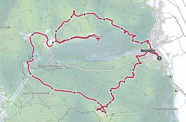 04/01/2024 – Con l’escursione di oggi si raggiungono il monte Jof sopra Avasinis e il bel pianoro che ospita gli stavoli Planecis. Punto di partenza dell’escursione è il paese di Avasinis; provenendo in auto da Trasaghis, in corrispondenza delle prime del case del paese, si trova a sinistra un parcheggio pubblico nei pressi di un piccolo parco giochi. A piedi ci si incammina e si prosegue verso Alesso. Superato il ponte sul rio Canale, si trova a sinistra la ex-latteria, ora museo dell’arte casearia. Qui parte il sentiero con tabella per la maina del Santo Spirito. Il sentiero è segnalato con bolli rossi e sale il versante est del monte Jof e in 20 minuti si raggiunge la maina del Santo Spirito. Si prosegue sul sentiero che prosegue dietro la chiesetta e, seguendo sempre i bolli rossi, si prosegue esplorando il versante nord del monte Jof. Dopo circa 55 minuti dalla partenza si raggiunge una zona con un grande traliccio. Senza raggiungere il traliccio, si devia a sinistra, facendo una curva stretta; dopo 20 metri si ritrovano i bolli rossi. Ora il sentiero sale più ripido seguendo la direzione della linea elettrica. Giunti ad un pianoro a quota 500 metri si trova un bivio (non segnalato); seguendo il sentiero a sinistra si prosegue sulla dorsale ovest del monte Jof. Lungo il sentiero (non bollato) si incontrano altre tracce che si spostano dalla dorsale. Dopo circa 15/20 minuti si raggiunge la fine della dorsale, dove un tubo in acciaio che fuoriesce dal terreno per mezzo metro segnala la cima del monte Jof (1 ora e 30 minuti dalla parziale), con panorama parziali che si aprono lungo la dorsale. Si ritorna al bivio di quota 500m e in pochi minuti si raggiunge la strada asfaltata che da Avasinis sale verso Cuel di Forchia. Si segue la strada asfaltata in salita passando nei pressi degli stavoli Bos e degli stavoli Chian da Forchia e dopo 25 minuti circa si lascia la strada asfaltata e si segue la strada sterrata a sinistra che traversa il versante nord del monte Covria. Dopo pochi minuti si raggiunge il pianoro soleggiato che ospita gli stavoli Planecis (circa 1 ora e 10 minuti dal monte Jof). Appena superato il primo stavolo posto a destra, la strada sterrata si biforca. In corrispondenza di tale biforcazione parte a sinistra il sentiero (senza indicazioni) che scende ad Avasinis, passando accanto ad una vasca circolare di 5/6 metri di diametro realizzata con muri a secco, che si nota dalla strada. Prima di scendere si può curiosare tra gli stavoli, quasi tutti ristrutturati. Dal pianoro è possibile anche salire il Col del Sole, seguendo il sentiero che risale i 200 metri di dislivello lungo il crinale nord del Col del Sole. Il sentiero che scende ad Avasinis non è segnalato ma è molto evidente, anche per la presenza di numerosi tratti con muretti a secco che delimitano il sentiero. Lungo la discesa a quota 400m si incontra uno stavolo abbandonato. Poco sopra Avasinis il sentiero interseca la strada asfaltata Avasinis-Cuel di Forchia e subito dopo ci si immette sulla mulattiera con fondo in sassi. Oltrepassata la maina di Sant Antoni, si raggiungono le case di Avasinis e si rientra al parcheggio nei pressi del parco giochi.