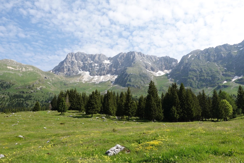 08/06/2024 – Escursione abbastanza breve e senza difficoltà, molto panoramica, che si svolge sotto la parete sud del Montasio, alta sopra i pascoli dello spettacolare, omonimo altipiano. Si utilizzano la sentieristica CAI (624, 622, 663) e la via di avvicinamento al Montasio che parte da Casera Pecol, evidente e ben segnalata. L’itinerario si sviluppa a sud ed in ambiente completamente aperto e non è presente acqua lungo il percorso, tenerne conto in fase di programmazione dell’escursione. Anello effettuato in senso antiorario.