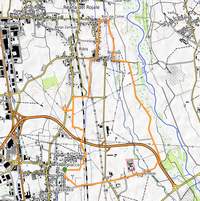 06/01/2025 – L’anello si svolge a nord-est di Udine tra i comuni di Tavagnacco e Reana del Rojale. L’anello è percorso in senso orario. All’andata si percorre un tratto, tra Cavalicco e Rizzolo, della passeggiata delle rogge che collega Molin Nuovo a Zompitta e al ritorno si percorre la strada dell’argine in sponda destra del torrente Torre. Punto di partenza dell’anello è il parcheggio nei pressi del civico 15 in via Pra d’Attimis ad Adegliacco. Sul lato della casa al civico 13 inizia la camminata lungo la passeggiata delle rogge, che proviene da Cavalicco. Dirigendosi verso nord si lambisce il paese di Santa Fosca e subito dopo si oltrepassa la tangenziale nord di Udine tramite una passerella. Più avanti si può fare una breve deviazione per raggiungere la chiesetta di San Giacomo in Tavella. Rientrati sul percorso principale si raggiunge una rotonda stradale dove il percorso prosegue a destra su marciapiede per poi deviare a sinistra parallelamente alla roggia di Udine, che rimane a destra del percorso. Si raggiunge il paese di Rizzolo (circa 1 ora dalla partenza), dove si prosegue a destra su via Roma verso la chiesa. Giunti alla chiesa si prosegue a sinistra su via Battiferro, che corre parallela alla roggia di Udine. Al successivo bivio si prosegue a destra su via dei Molini. Al termine della via si prosegue a destra su via Primulacco, intercettando la roggia di Palma. Superata l’ultima casa sulla destra si gira a destra e si rientra verso Rizzolo, lungo la passeggiata delle rogge. La strada sterrata termina nei pressi del Tempietto ai caduti di Rizzolo, su via Roma lasciata in precedenza. Si prosegue a sinistra e si oltrepassano le ultime case di Rizzolo. Dopo 150 metri dall’ultima casa di Rizzolo si devia a destra sulla strada dell’argine destro del torrente Torre. Si prosegue in direzione sud fino a lambire la tangenziale nord di Udine, che troviamo sulla nostra destra. Giunti al ponte (sulla destra) che permette di oltrepassare la tangenziale, si percorre il ponte e si raggiunge il paese di San Bernardo, dove si ritrova la roggia di Palma. Oltrepassato il paese si prosegue sulla via principale (via san Bernardo), si passa la dismessa caserma Nanino, si attraversa via Carbonaia e si oltrepassa la ferrovia tramite il ponte stradale. Nei pressi del cimitero (che rimane a sinistra) si lascia la strada asfaltata e si prosegue su strada sterrata e poi asfaltata che ci riporta al punto di partenza della camminata.