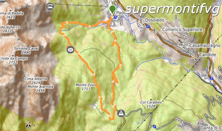 Carta Tabacco 017, segnavia CAI 152, 164, 125 e strada asfaltata. Dislivello 550 m, Lunghezza 13,9 km, tempo indicativo 3.30 h (escluse soste), Difficoltà T (con dislivello e sviluppo comunque di un certo impegno). Altitudine min 1218 m (Padola), max 1618 ca (sent. CAI 164 in località Bosco di San Rocco).
