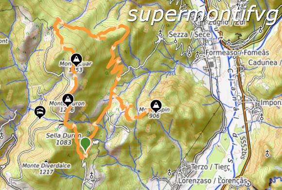 Carta Tabacco 013, sentieri locali per lo più ben segnalati, piste e strade forestali senza segnalazioni, un tratto di strada asfaltata coincidente con il segnavia CAI 162. Sviluppo 14,7 km, dislivello 950 m. Tempo indicativo di marcia 4.25 h (soste escluse). Altitudine 740 m. circa (Cazzaso Nuova), max 1350 m. (Monte Cuar). Difficoltà E.